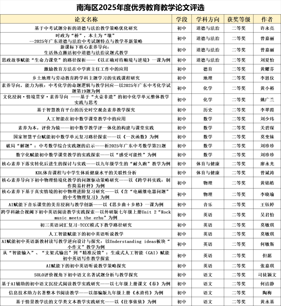 我校教师在二、三等奖评选中同样表现亮眼,多点开花、全域丰收,获奖群体覆盖各年级、各学科,形成了“人人重教研、个个有成果”的浓厚氛围。